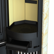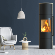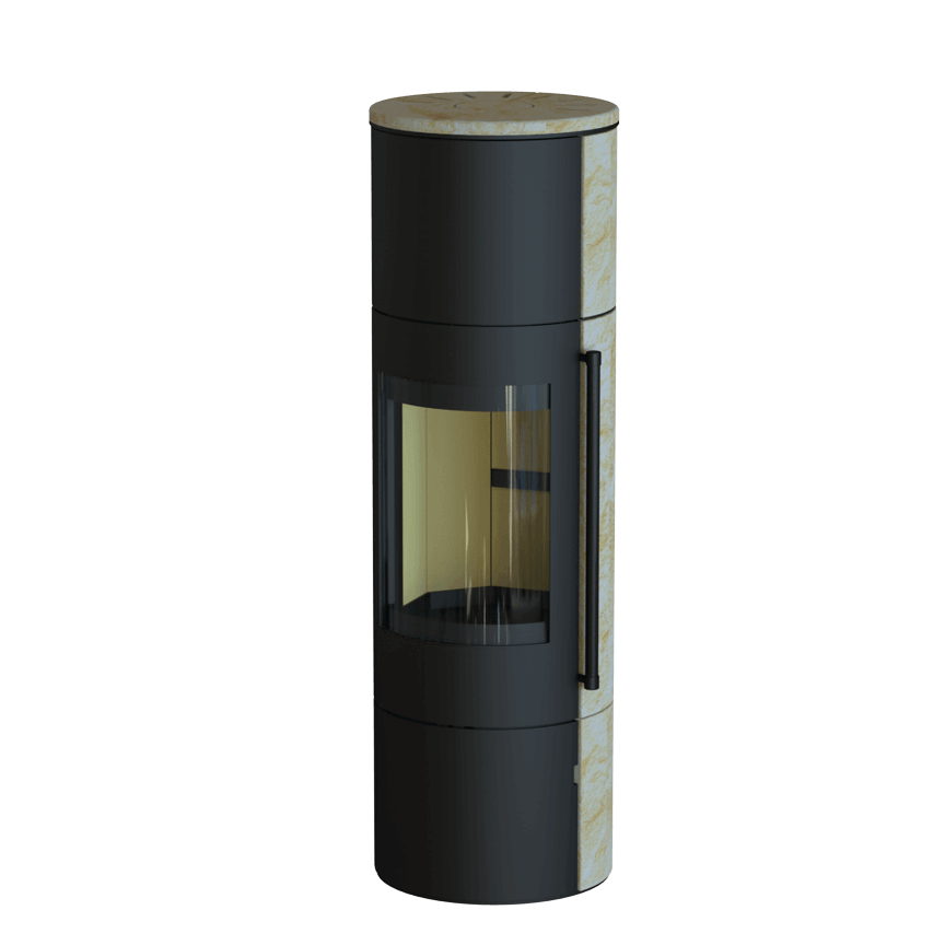 Thermia Eos 210 XL V3S kaminska peć u crnoj boji s pješčanim kamenom donosi eleganciju u jedinstvenom ovalnom dizajnu. Ova peć privlači pažnju svojim detaljima i prirodnim izgledom, stvarajući posebnu udobnost i ugodnu atmosferu u vašem dnevnom boravku.