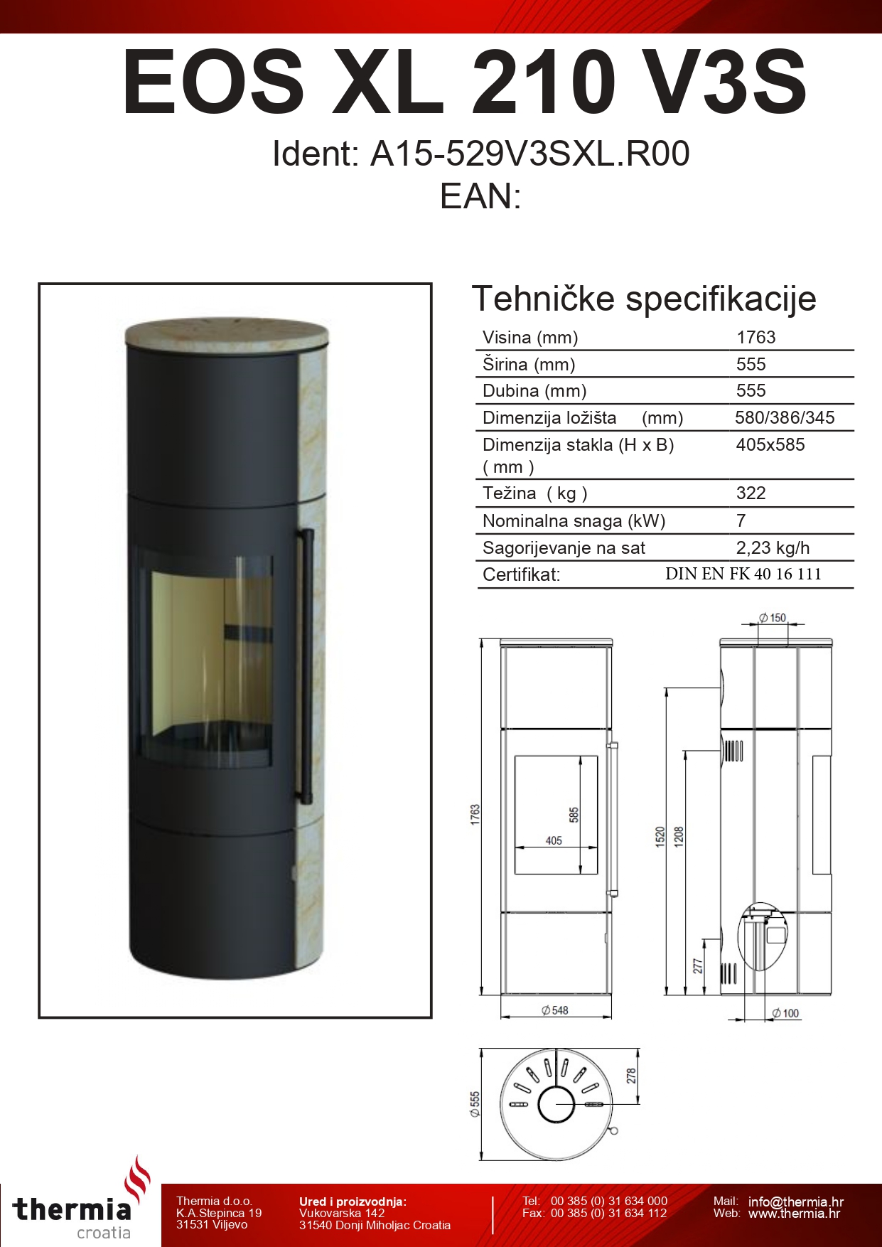 Tehničke Specifikacije Thermia Eos 210 XL V3S Kaminske Peći